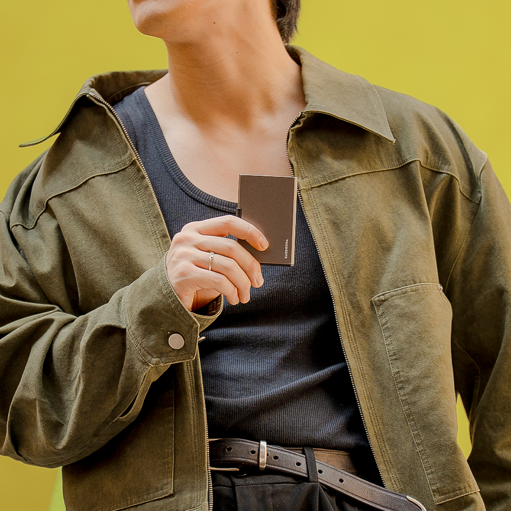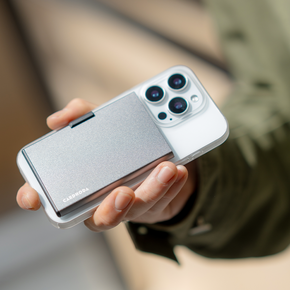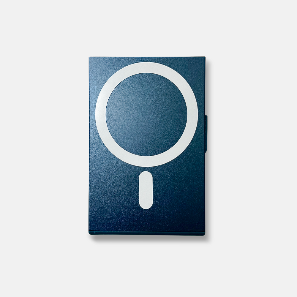 Use with MagSafe-compatible phones. Round edged aluminium case design featuring strong magnet for a secure fit. Hold your phone and essential cards in one hand, designed for easy portability.
